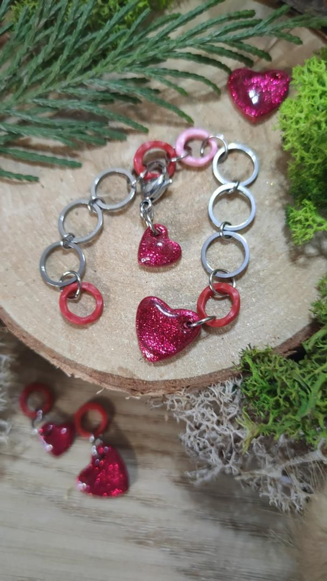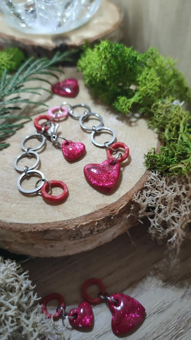 Compte-rang tricot réaliser à la main en argile polymère et assemblé avec des anneaux en acier inoxydable.