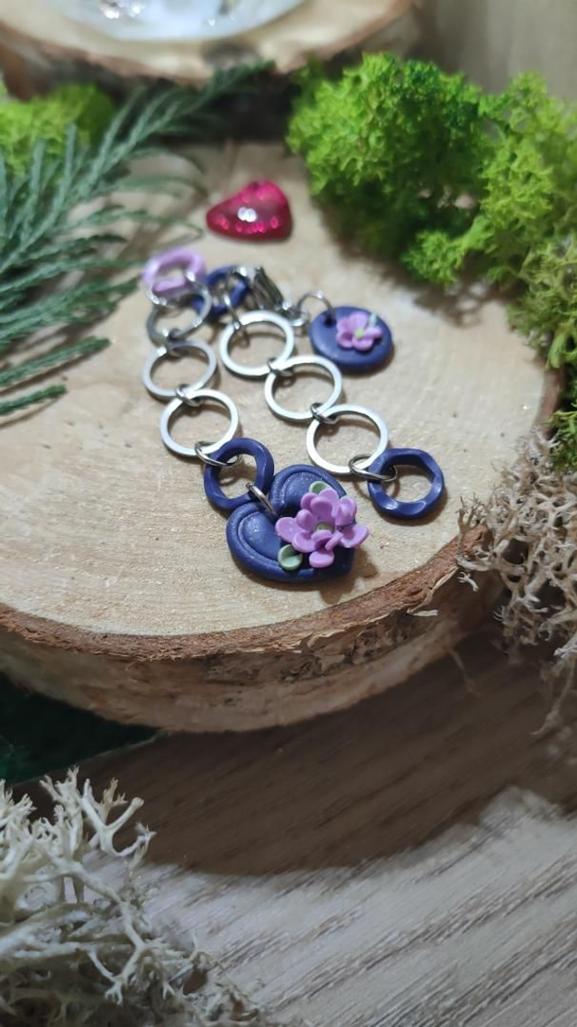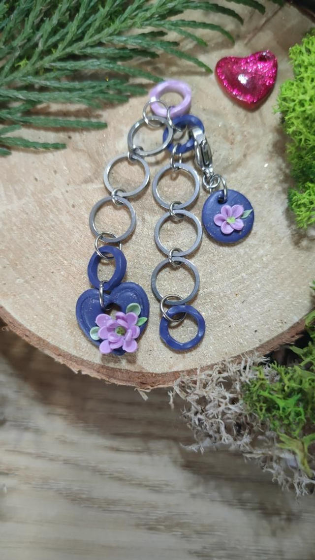 Compte-rang tricot réaliser à la main en argile polymère et assemblé avec des anneaux en acier inoxydable.