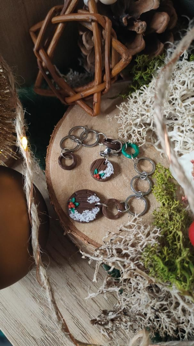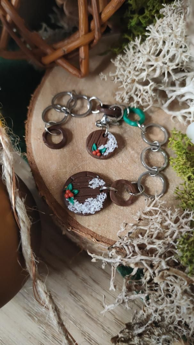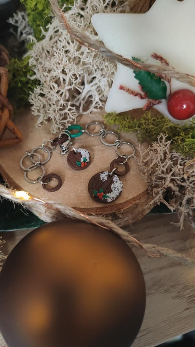 Compte-rang tricot réaliser à la main en argile polymère et assemblé avec des anneaux en acier inoxydable.