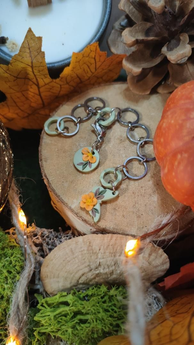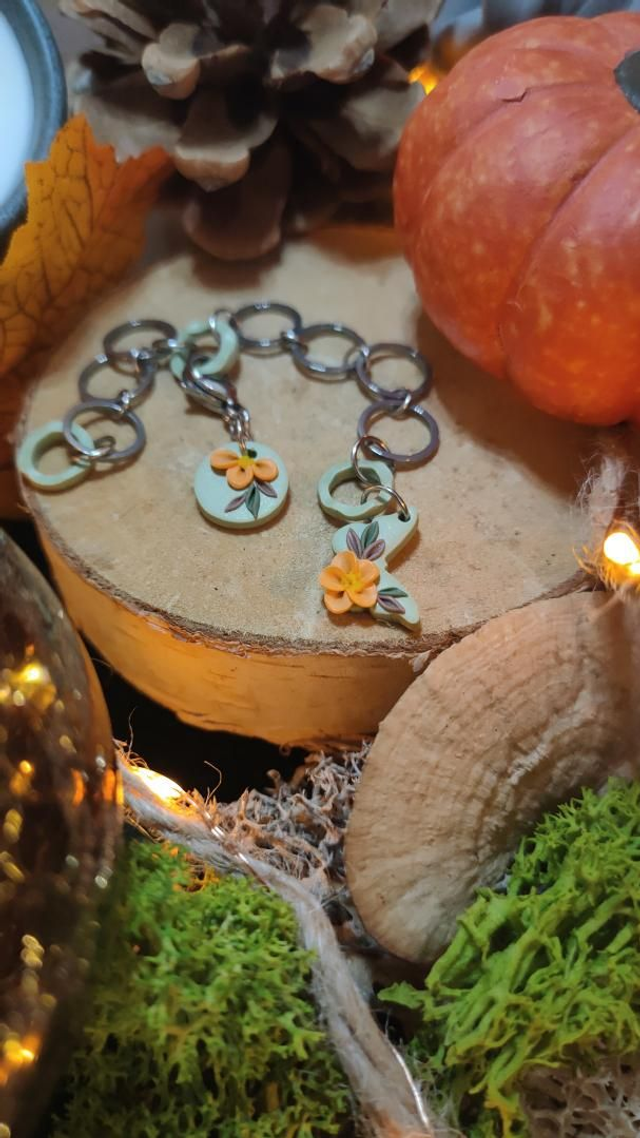 Compte-rang tricot réaliser à la main en argile polymère et assemblé avec des anneaux en acier inoxydable.