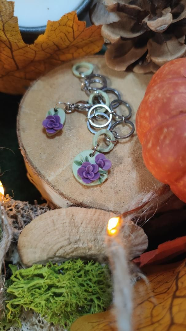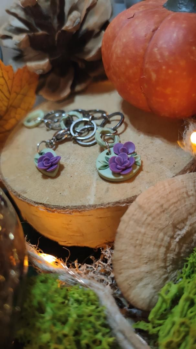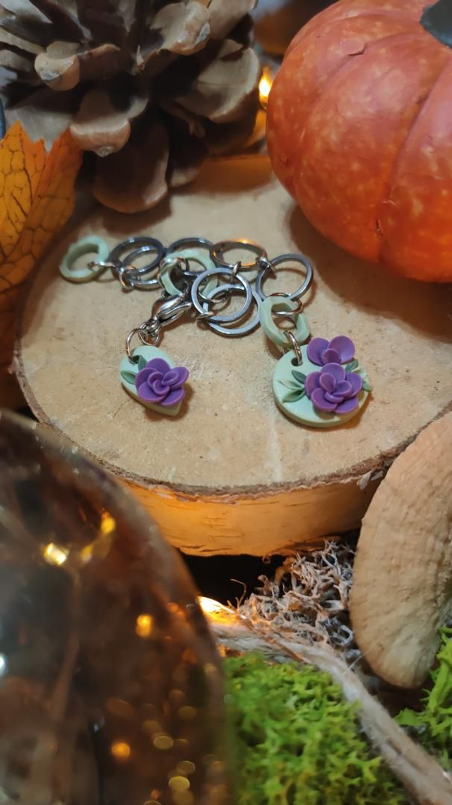 Compte-rang tricot réaliser à la main en argile polymère et assemblé avec des anneaux en acier inoxydable.