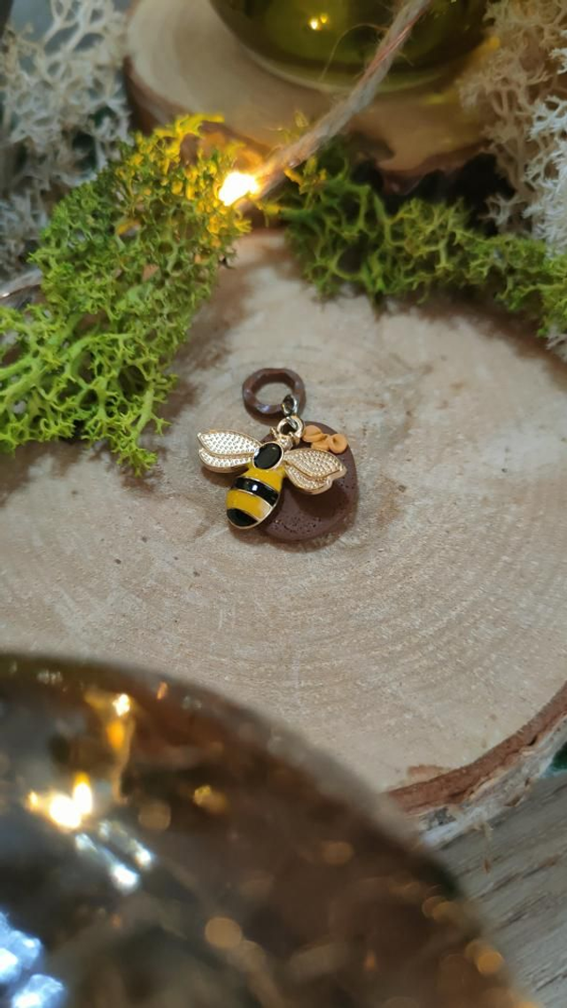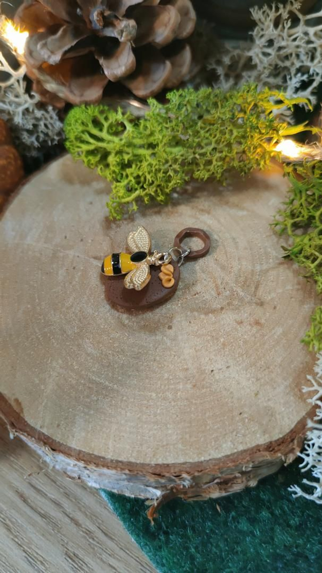 Marqueur réalisé en argile polymère avec une médaille abeille. Cette article est en collaboration avec Sophie de Au fil de la ruche.