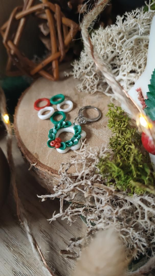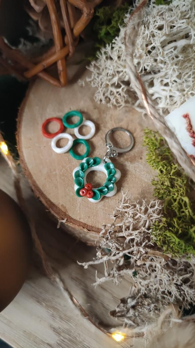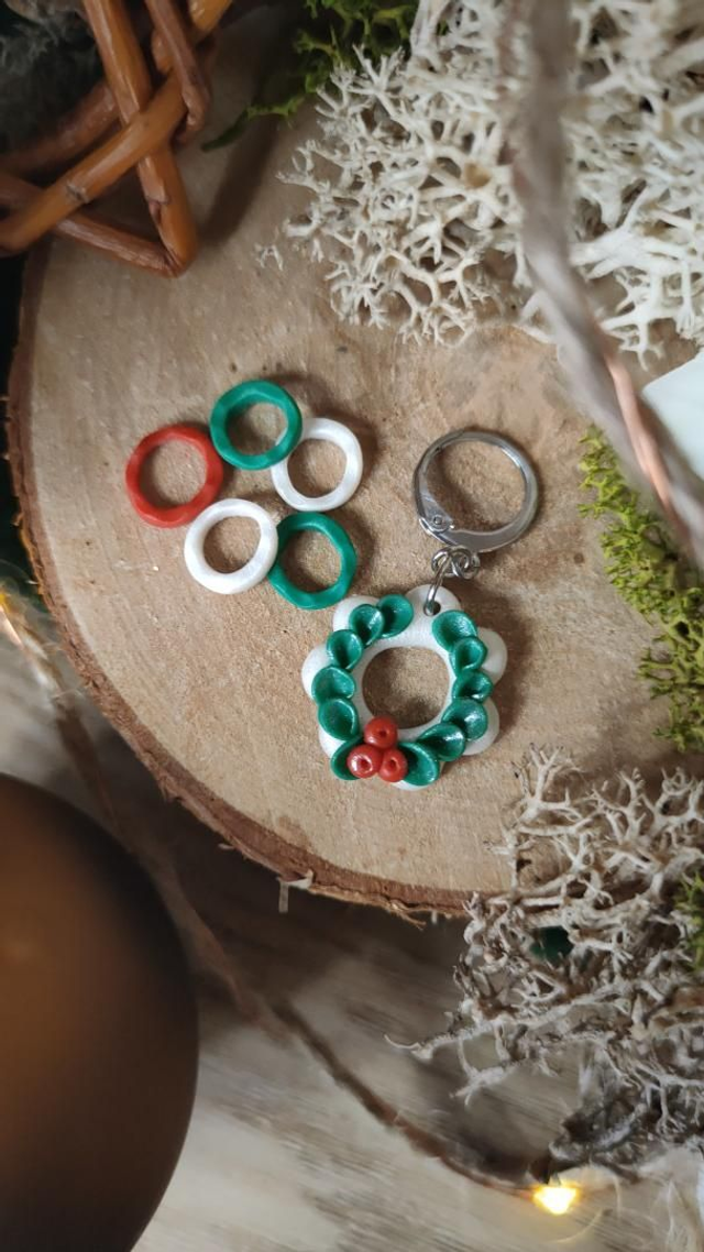 Marqueur amovible attache dormeuse accompagné de 5 anneaux marqueurs réalisés en argile polymère et acier inoxydable. Compatible jusqu'aux aiguilles taille 5mm.