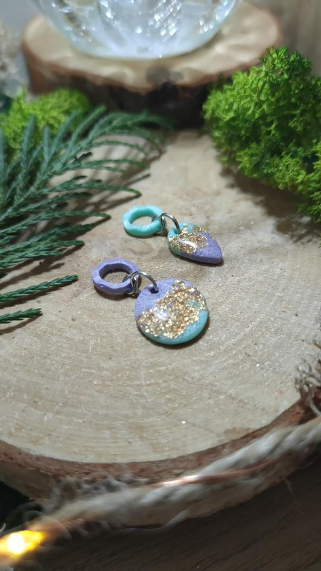 Réalisé à la main en argile polymère avec des anneaux en acier inoxydable.