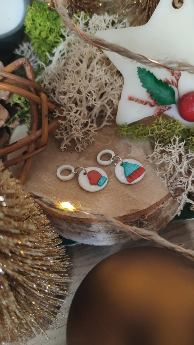 Réalisé à la main en argile polymère avec des anneaux en acier inoxydable.
