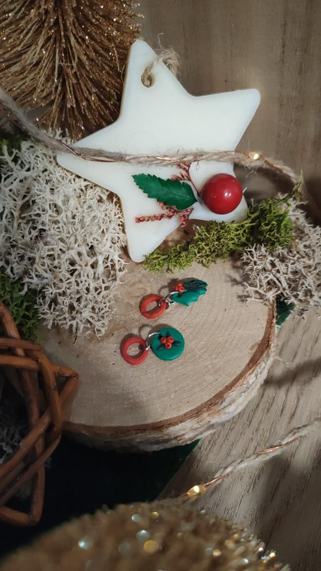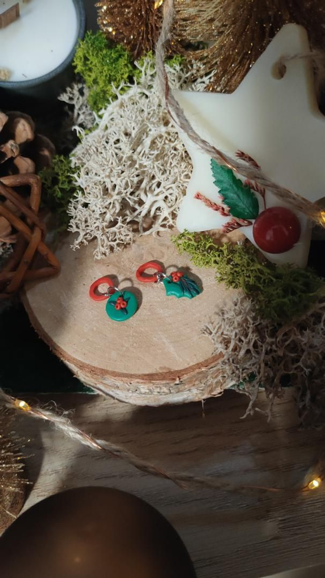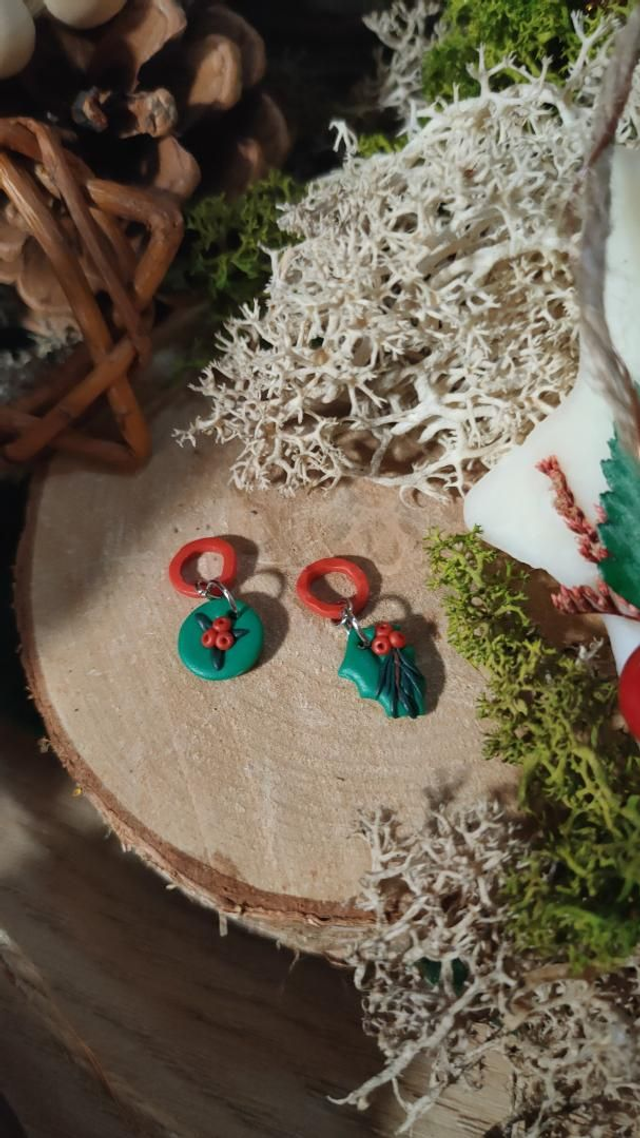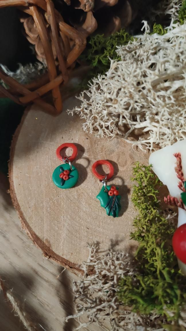 Réalisé à la main en argile polymère avec des anneaux en acier inoxydable.