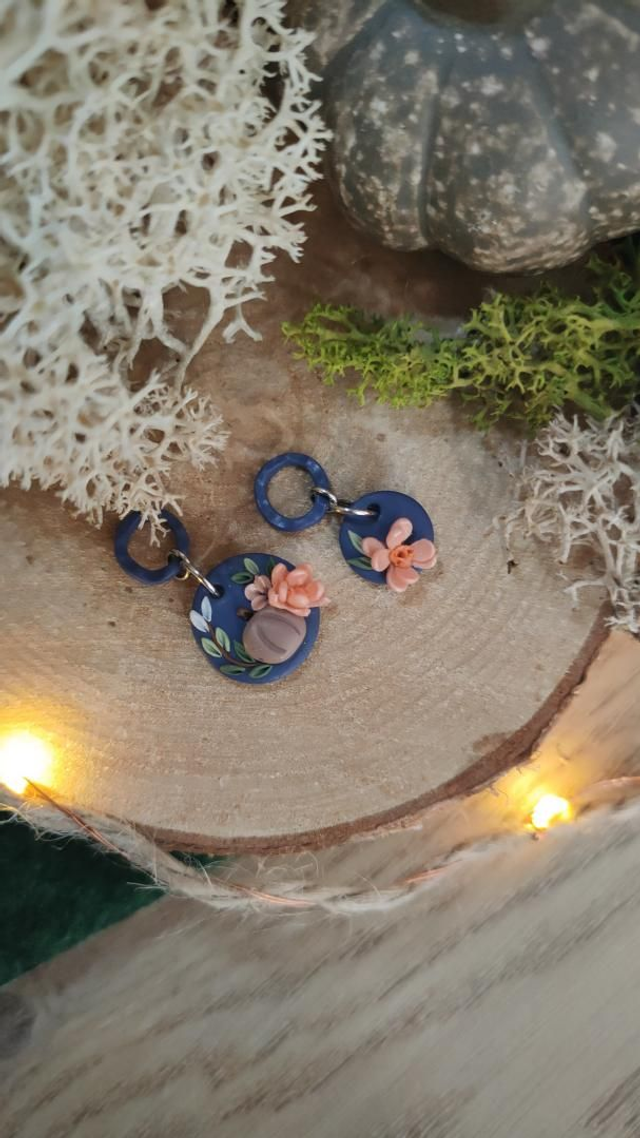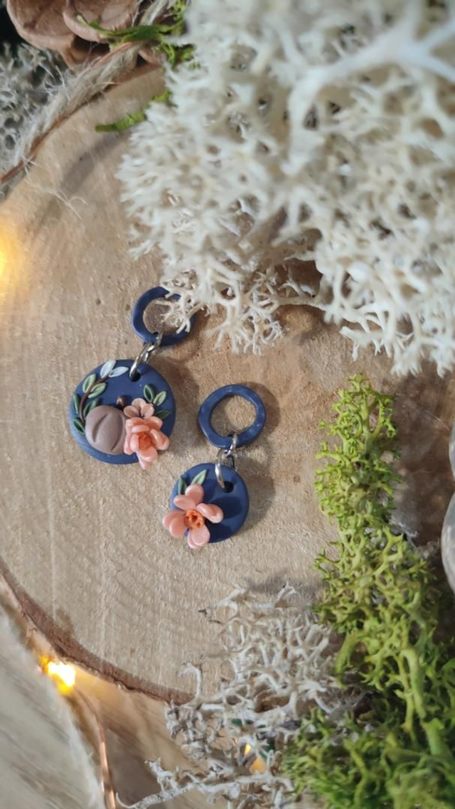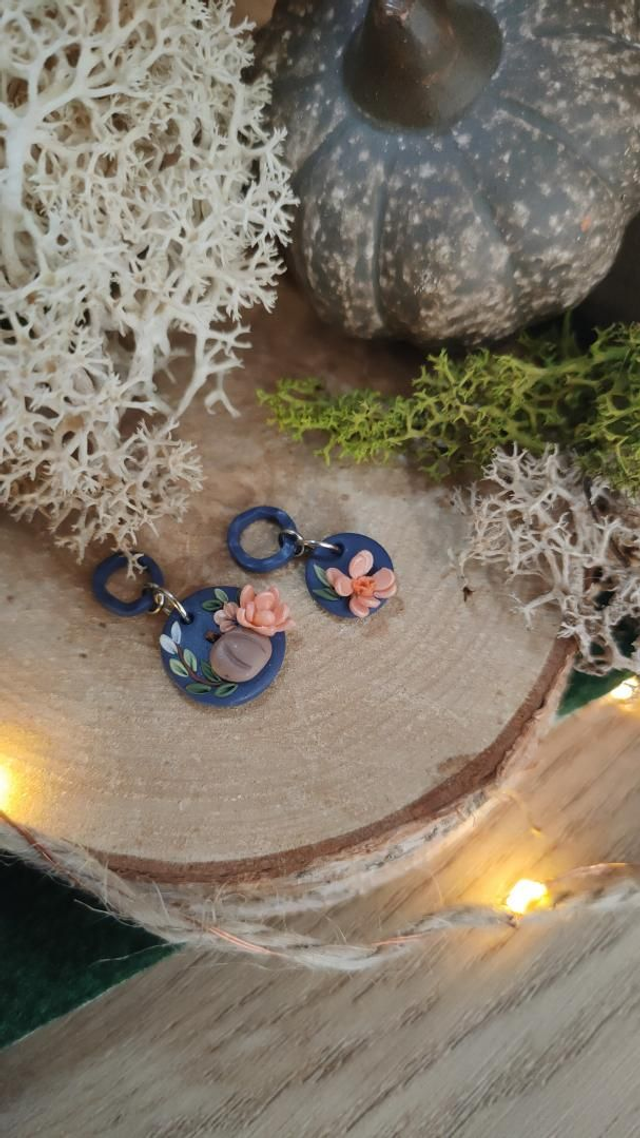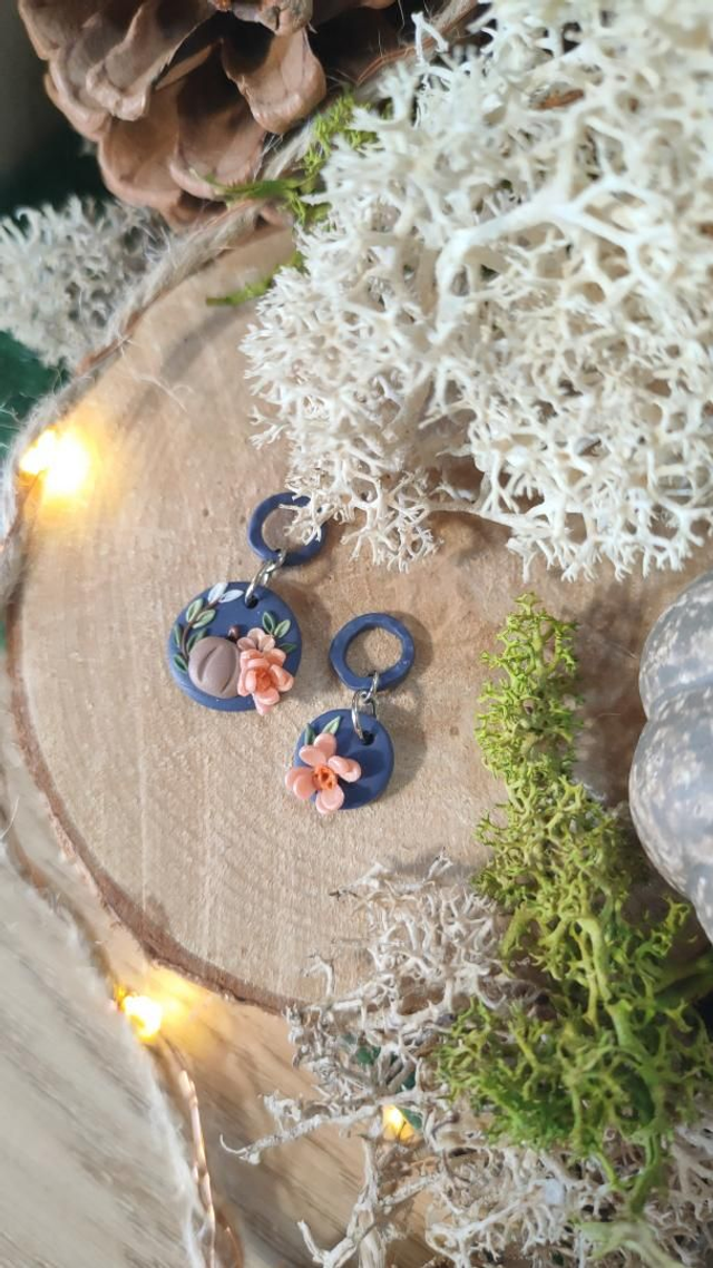 Réalisé à la main en argile polymère avec des anneaux en acier inoxydable.