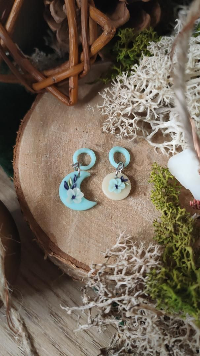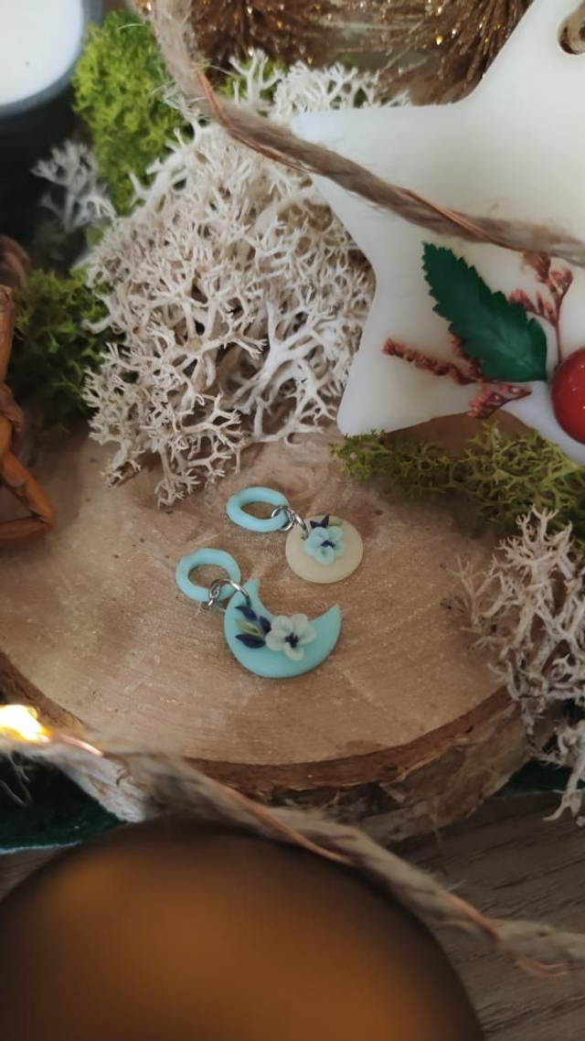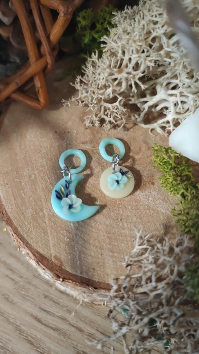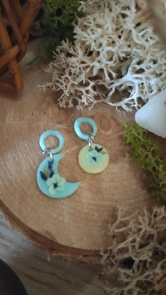 Réalisé à la main en argile polymère avec des anneaux en acier inoxydable.