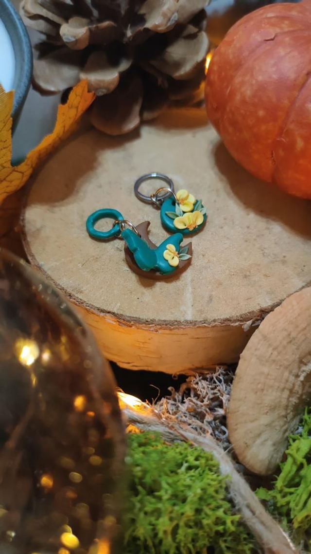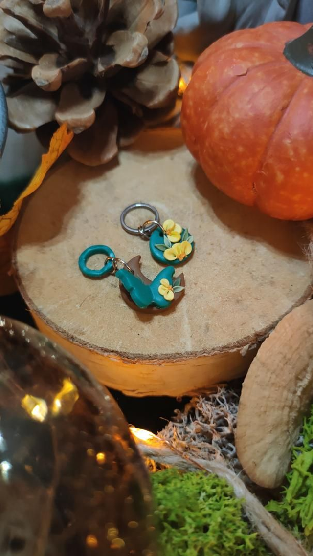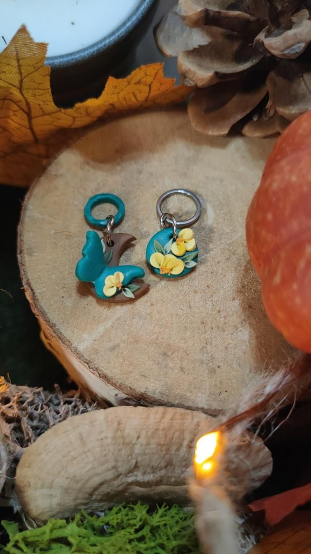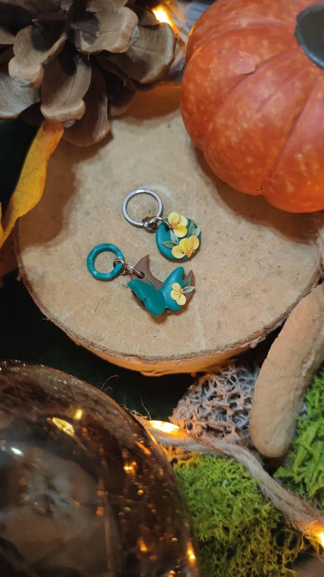 Réalisé à la main en argile polymère avec des anneaux en acier inoxydable.