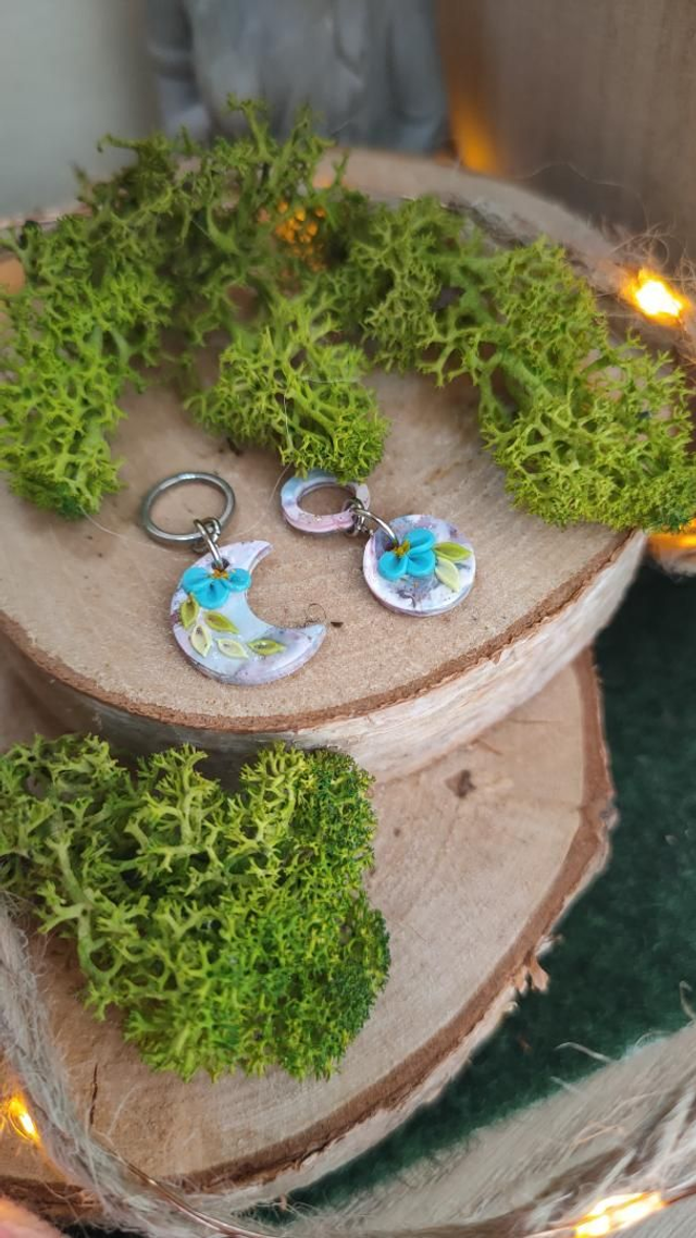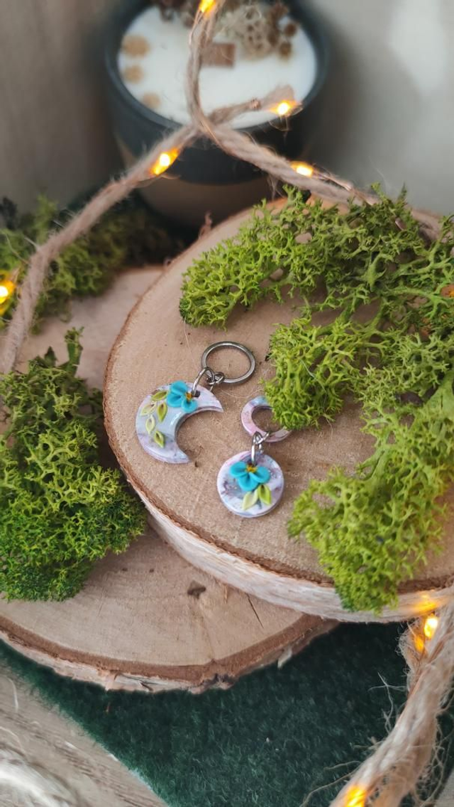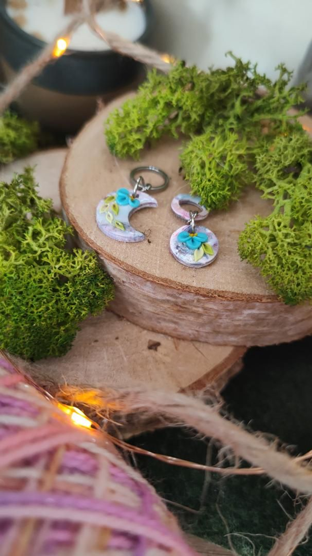 Réalisé à la main en argile polymère avec des anneaux en acier inoxydable.
