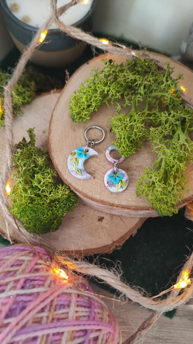 Lot de 2 marqueurs tricot façon broderie. Anneaux pouvant aller sur des aiguilles jusqu'à la taille 5.
