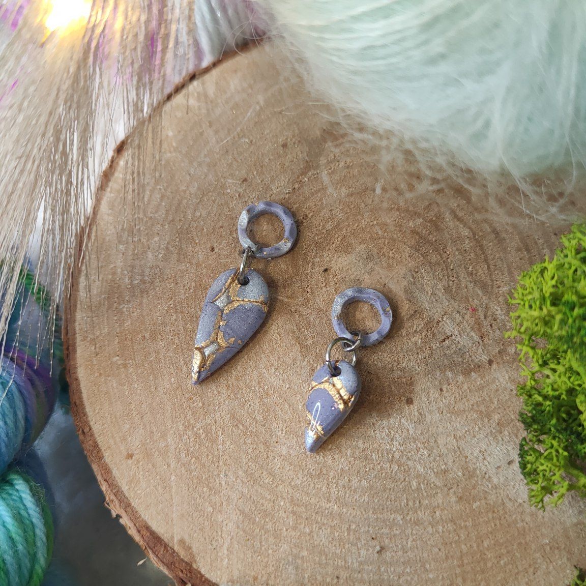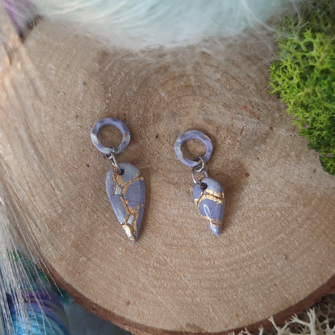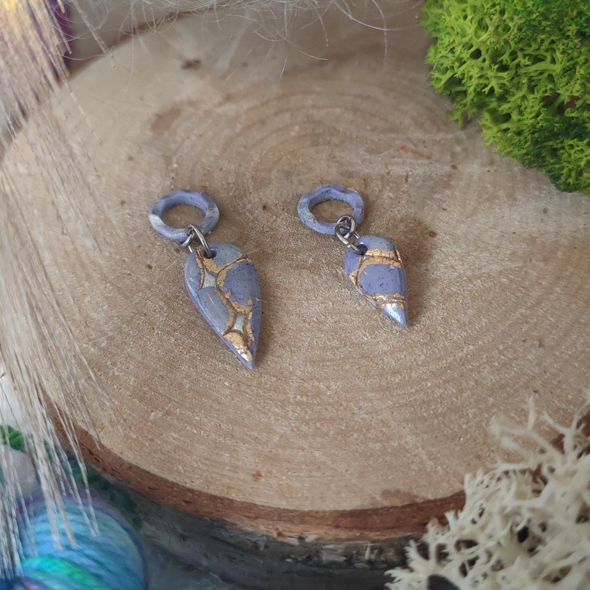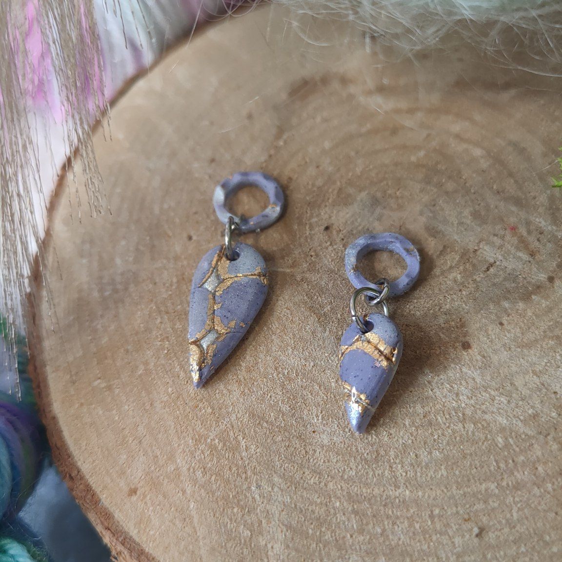 Réalisé à la main en argile polymère avec des anneaux en acier inoxydable.