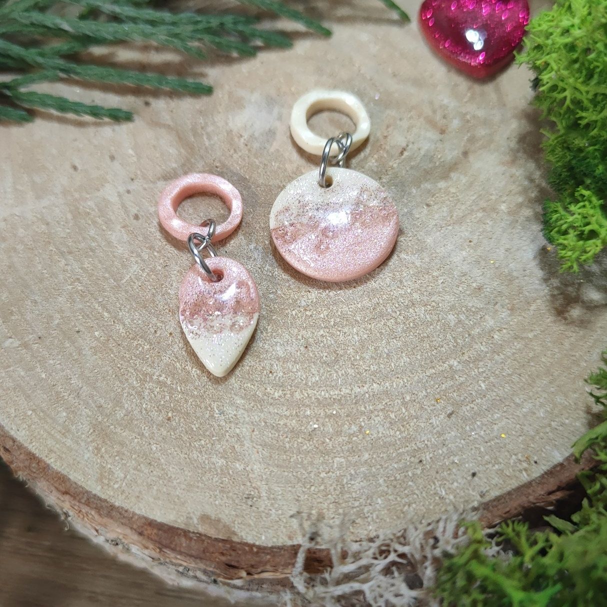 Réalisé à la main en argile polymère avec des anneaux en acier inoxydable.