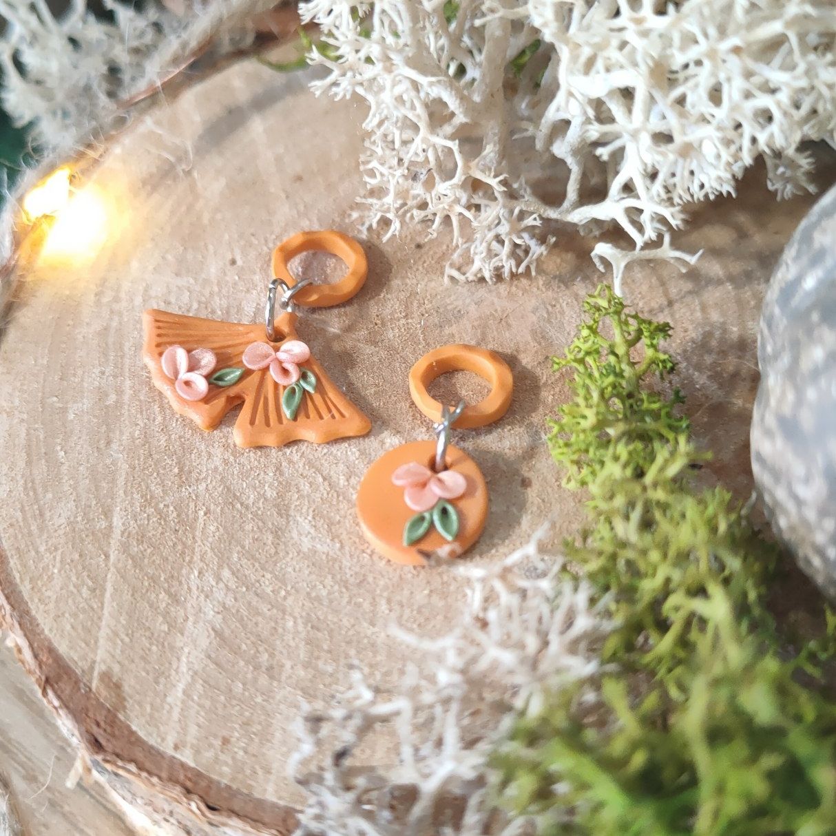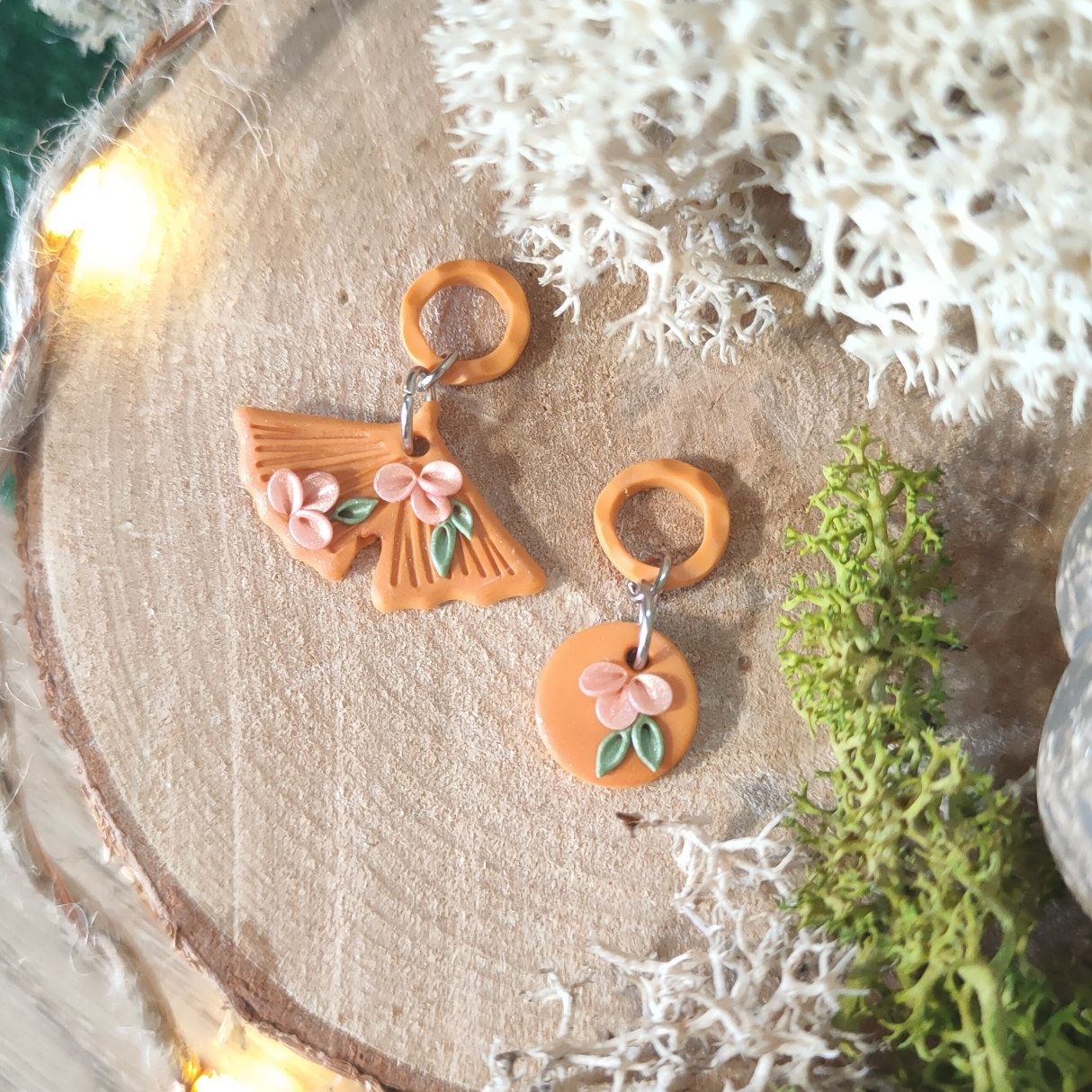 Réalisé à la main en argile polymère avec des anneaux en acier inoxydable.