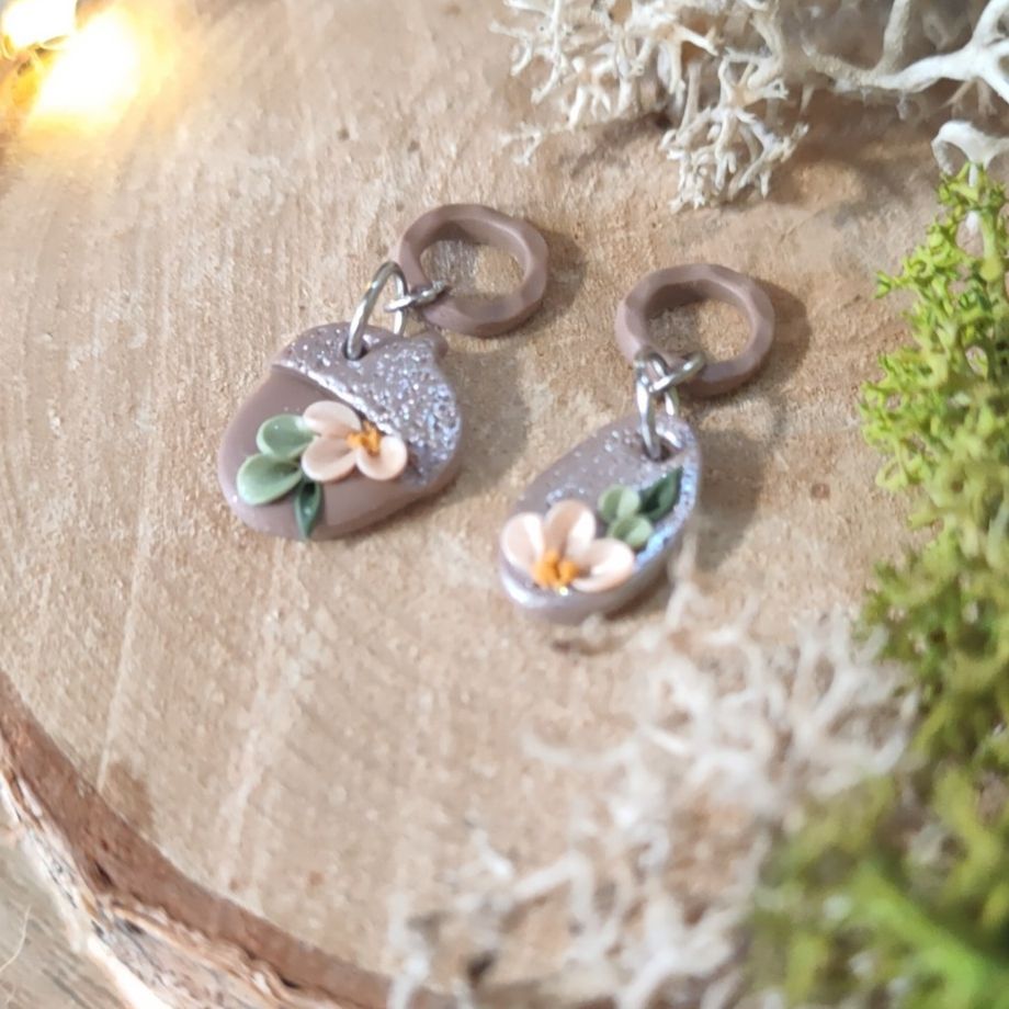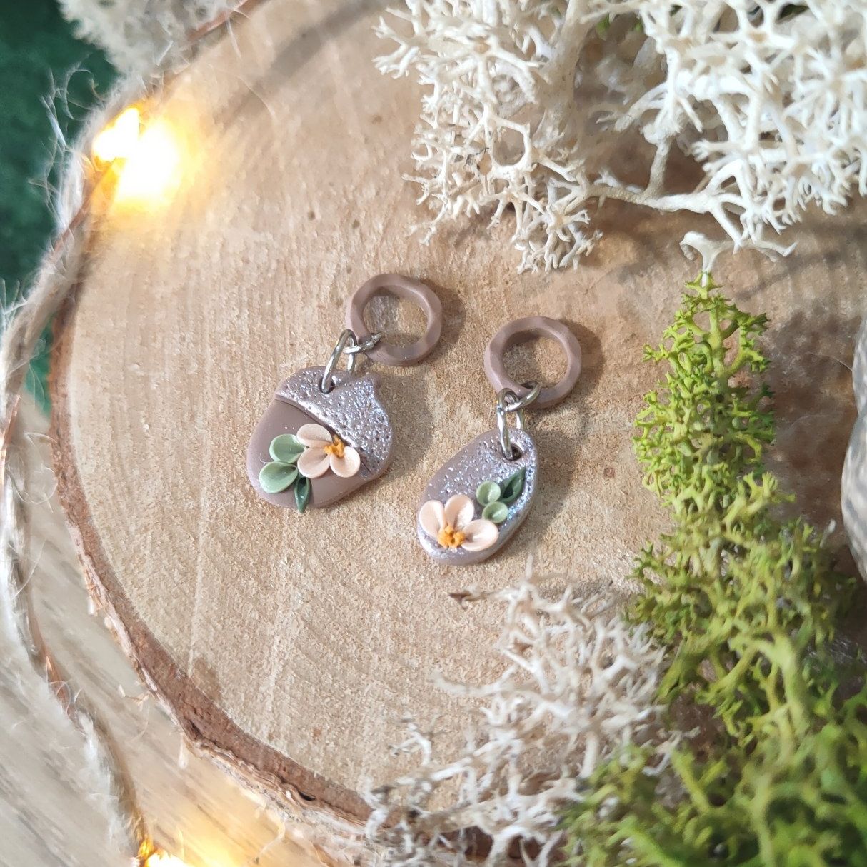 Réalisé à la main en argile polymère avec des anneaux en acier inoxydable.