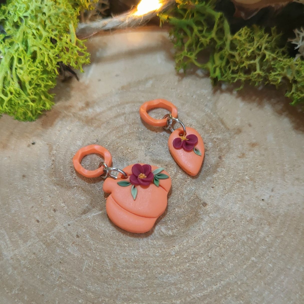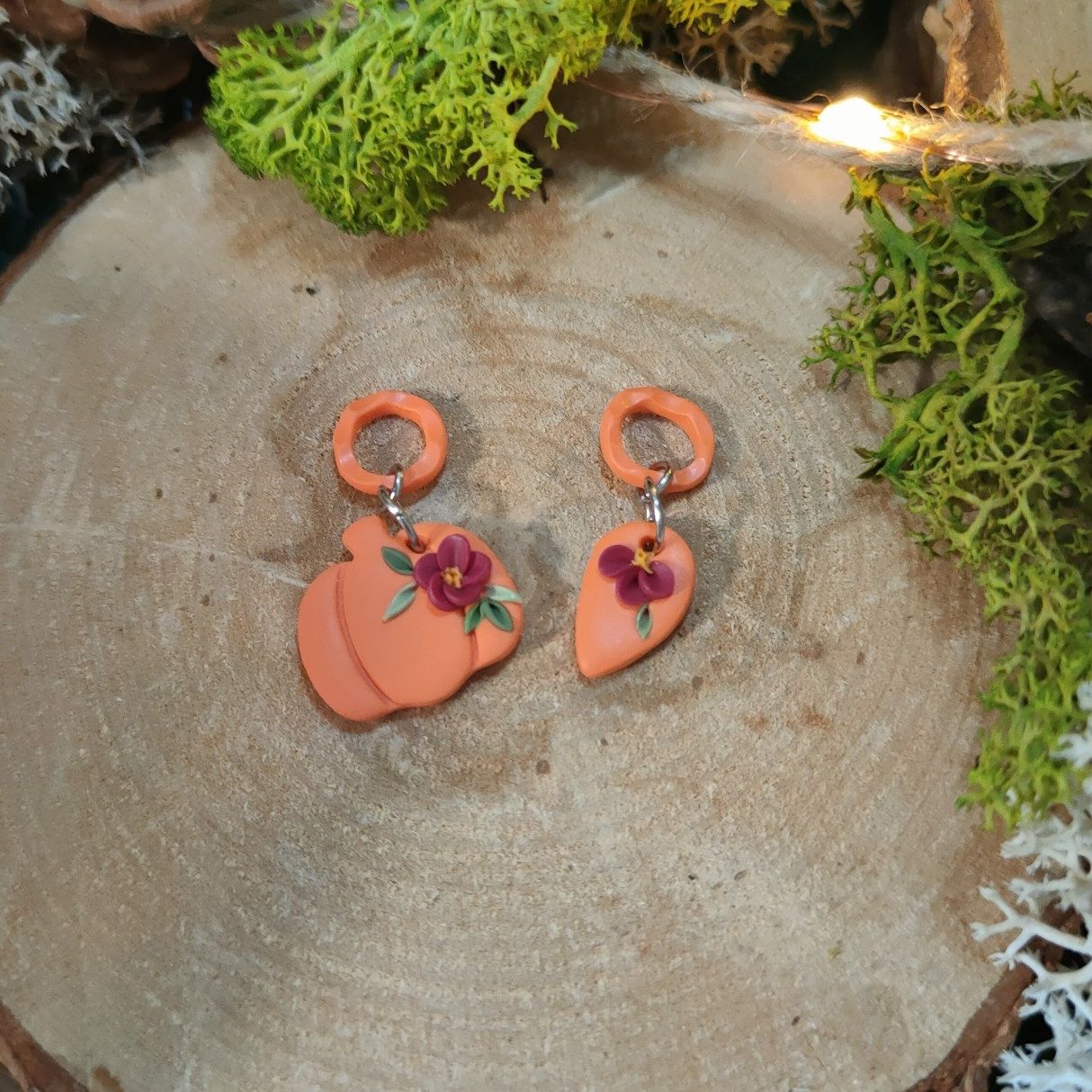 Réalisé à la main en argile polymère avec des anneaux en acier inoxydable.